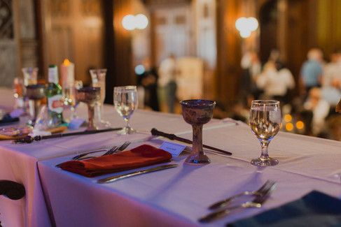 As guests arrive at the church, they are instantly transported into Hogwarts. The church was specifically picked for it's medieval gothic architecture and details resembling the books and movies. The dramatic lighting from the stained glass window and chandeliers gave the ceremony the perfect mood you'd expect in a J.K. Rawling novel. Their ceremony was simply stunning and heartfelt. You could feel the happiness everyone had for them overwhelming the cathedral!